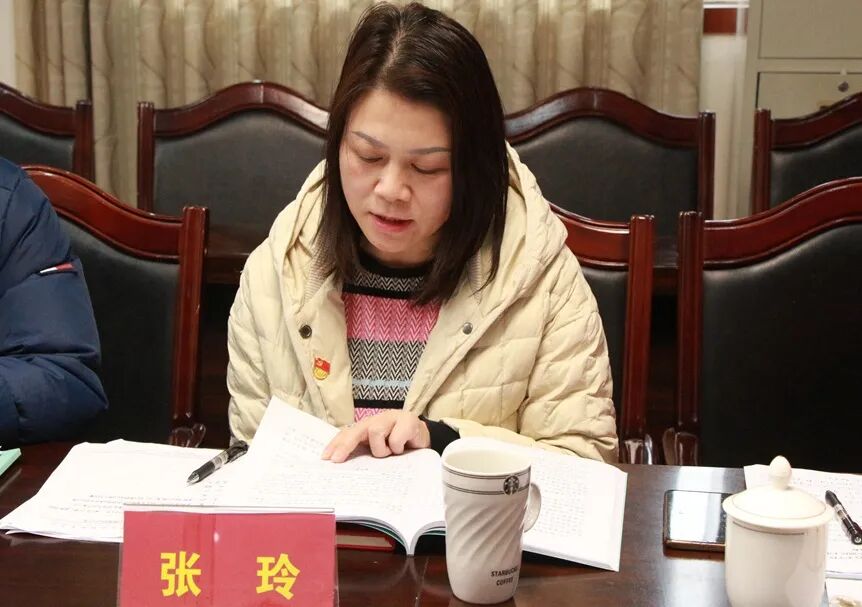 ▲党支部统战委员、教务处主任张玲发言