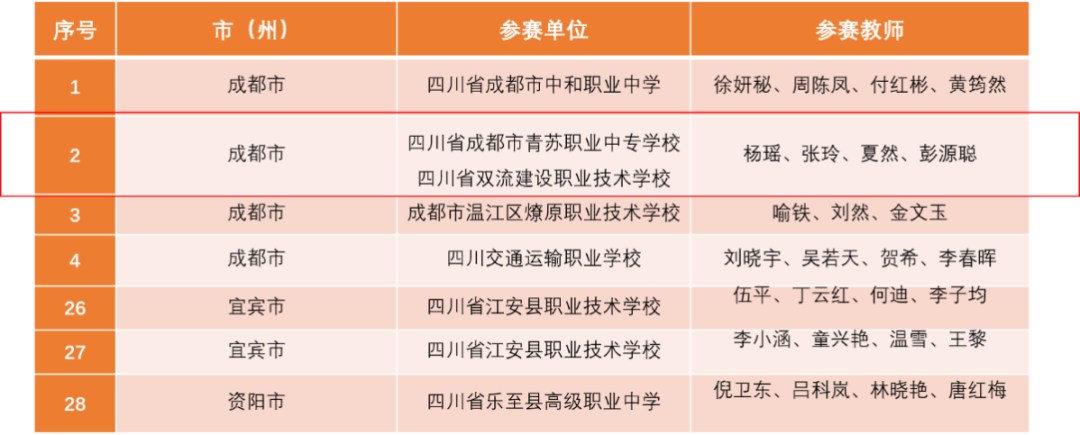 2024年成都市中等职业学校 教师教学能力 比赛拟获奖名单 三等奖